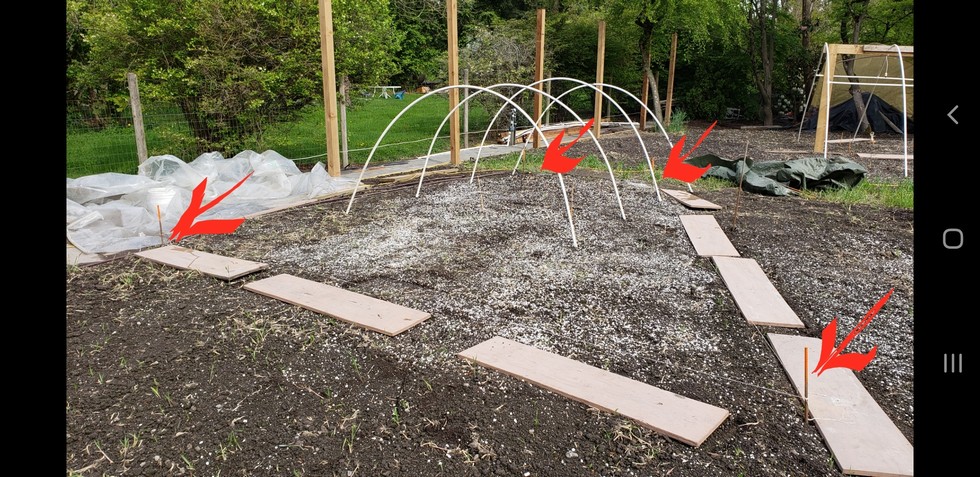 This 1 of the 150 sq ft patches. The arrows are pointing to the rebar that delineate the corners of the patch. These pieces of rebar will remain in place for the duration of the season.