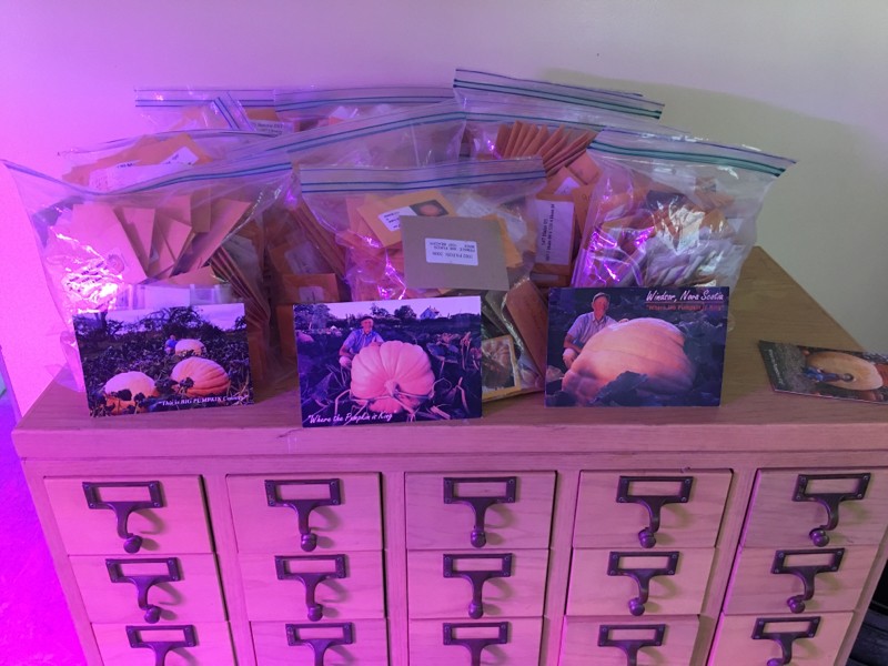 My wife is a teacher and reclaimed her library card catalog for her home virtual teaching office. So out came a few thousand pumpkin seeds with a few from the late 90�s but most are 2005-2008. We also found some old Howard Dill postcards. In total we have 12 one gallon ziplocks full. Now what do I do with them? LOL