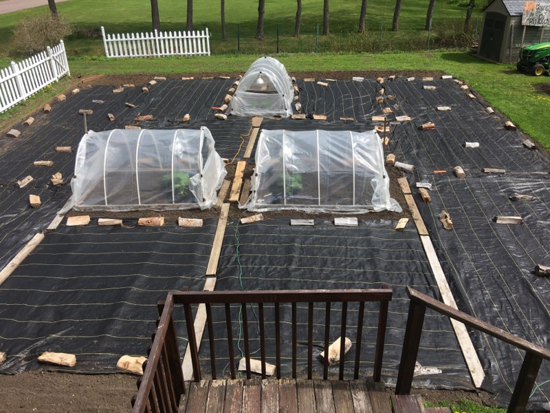 It is hard to believe we had snow on the ground last weekend and that this is the second week since planting out. The hoops have endured 3 snowstorms and lows at 27 degrees F. We are finally seeing weeds pop up which is a good sign that the soil is finally starting to warm.