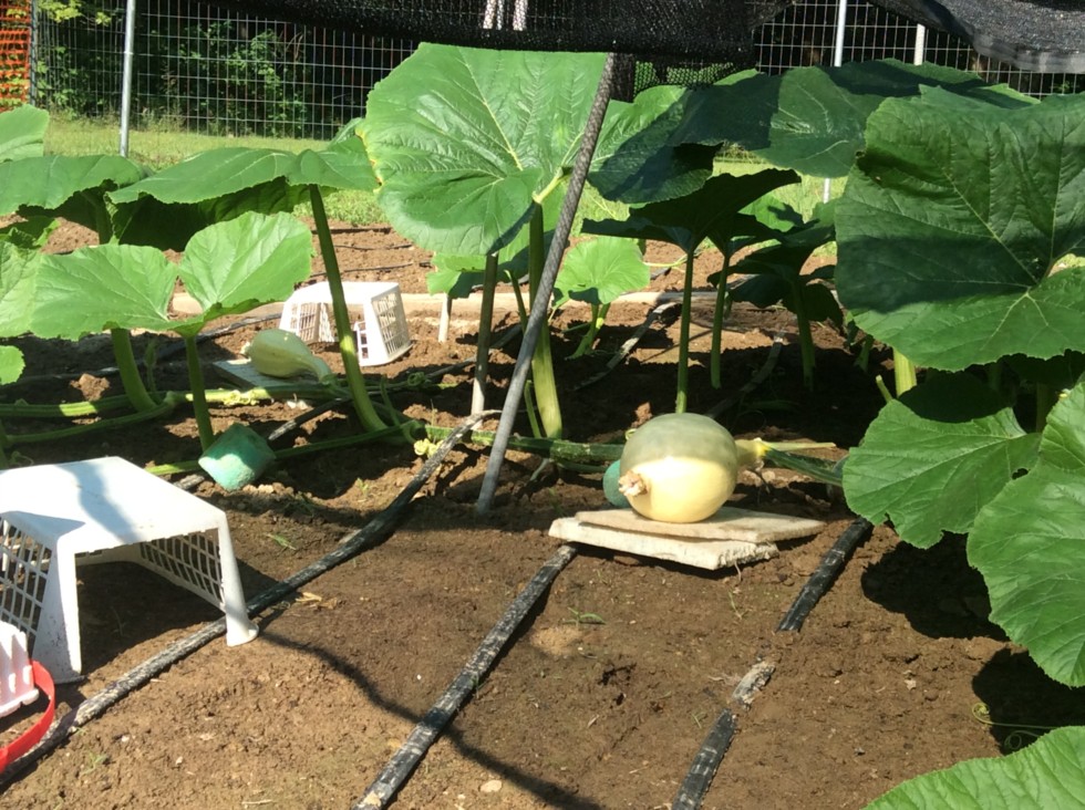 Day ten today for the 1868 Sherwood fruit. Kind of small, but it seems to be picking it up. This plant seems to have excessive nitrogen, as the vine tips are way up in the air, and very brittle. I have a back up in the back of the picture several days behind it. We got 1/4 inch of much needed rain last night. Im turning the water off today.