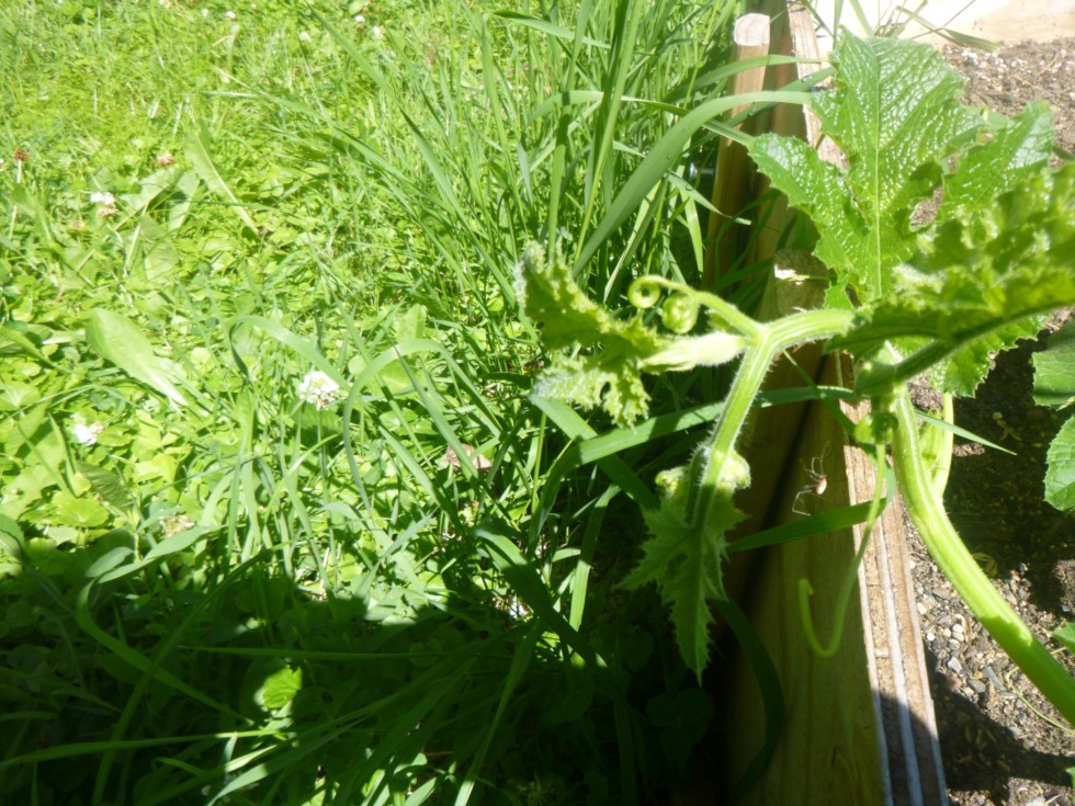 First female flower on 205 Wursten field pumpkin plant. The flower is well positioned to grow blossom down.
