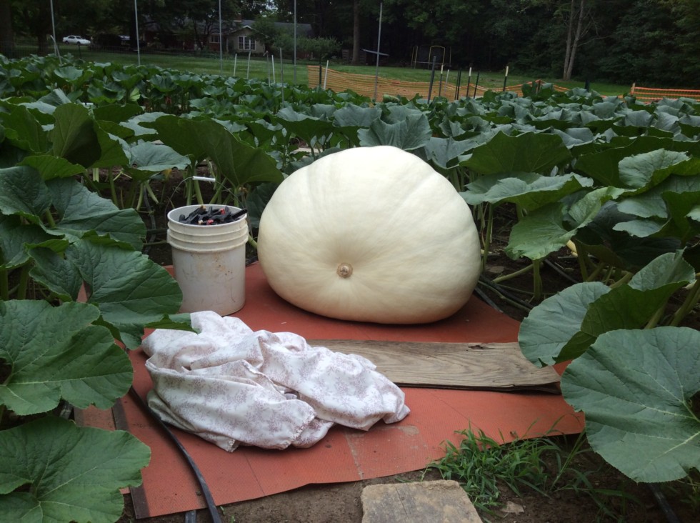 Day 25 for the 2261 Wallace pumpkin. 242.5� ott, 328#. This one went crazy the last 5 days, putting on 174# for an average of almost 35# a day. We got rain and have been cloudy the past 2 1/2 days and i noticed that gains have dropped off. I am hoping it is just the weather and not the 3 vines with yellowing leaves. No squash bugs at all, so i don't think its Yvd. Hopefully just a deficiency or just weather related.