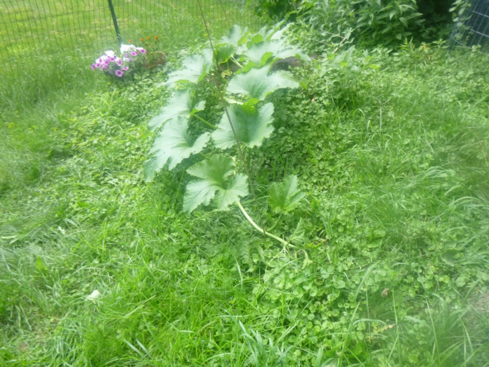 122 Lyons Marrow plant. Starting to train a secondary vine to run south to north.