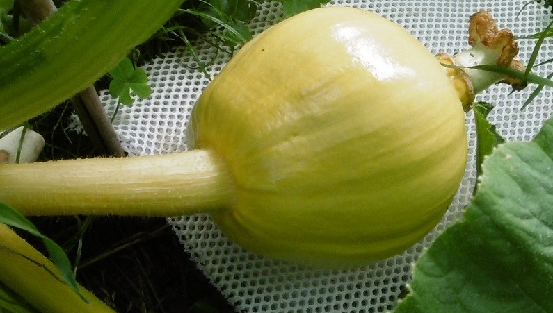 1215 Young @ 13 DAP. This one was on a long stem and had a fantastic color, but it got culled because it was a funny shape and growing on the wrong side of the vine. We have pollinated three more on the 1215: x 532 Young, 721 Gansert and 666.5 Gansert. Now if those are aren't decent orange crosses, I don't know what is.