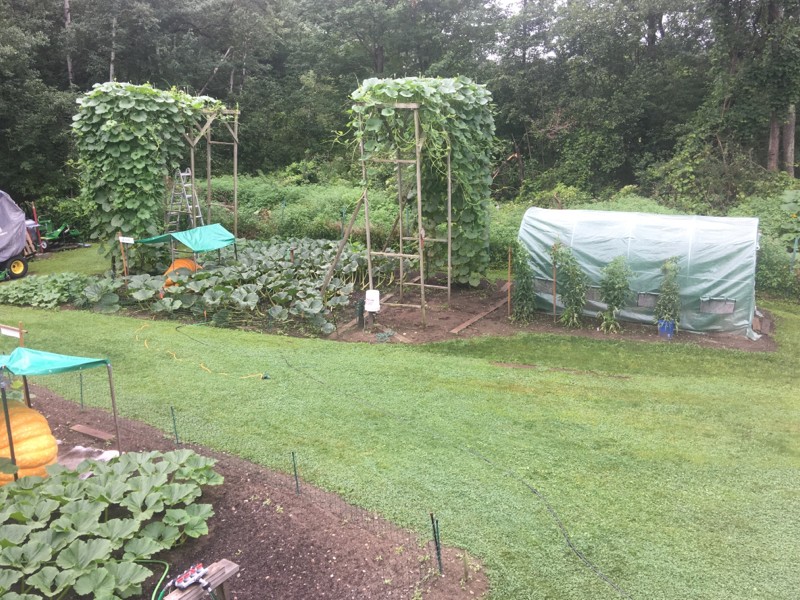 Old patch is fairly healthy although we are starting to see leaf fungus issues on the long gourds and pumpkin leaves.