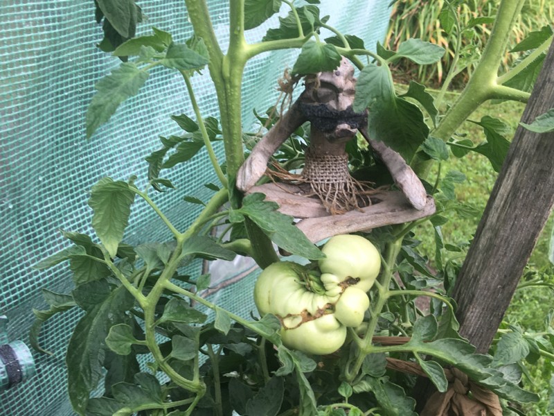 Here is our 5 gallon bucket challenge tomato and it is not looking promising.