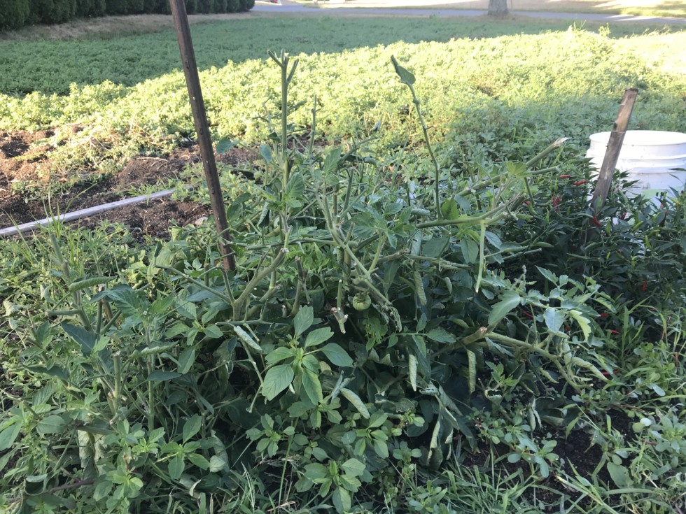 Ok you tomato growers out there, try not to laugh at my efforts. This is all that's left of my giant tomato plant after the deer decided to annihilate it. It's been that kind of year.