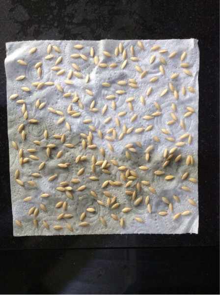 Seed from the big cucumber. Usually 50 or so would be a good number, but it yielded over 240 viable seeds. (When placed in water, the good ones will sink to the bottom)