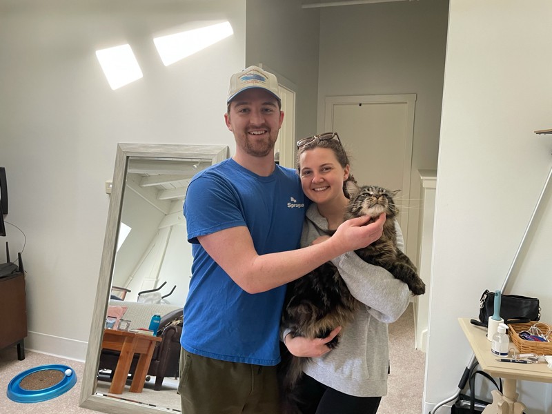 Here is Parker and Amanda with their 10 month old Maine Coon cat named Rollo. Already 15 pounds!