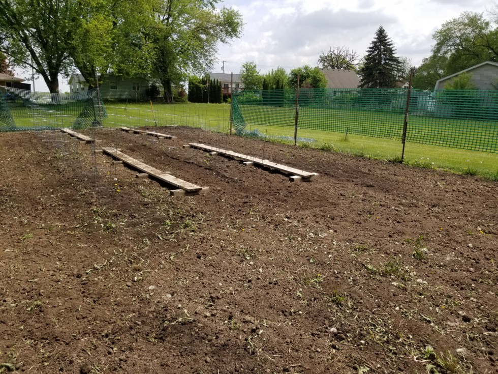Tomato patch all ready to go, tilled in my cover crop of dandelions and other assorted greens. Hoping they go outside this coming week.