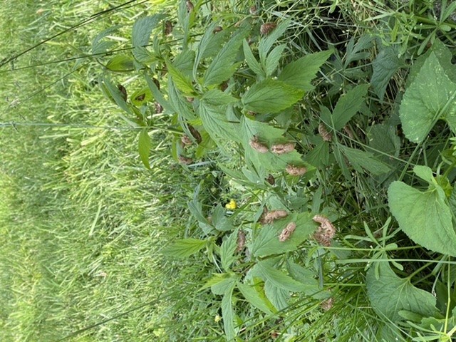 The 17 year cicadas have started to come out. These are some of their exoskeletons on the weeds in our neighbor�s yard.