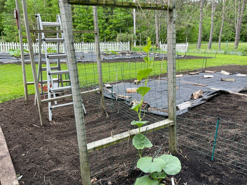 Here is our greenhouse trellis 146 LaBlanc and it is 53� long today. Long gourds don�t do as well as pumpkins in the cold so we are very pleased that this is still alive and growing.