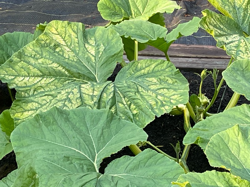 I wanted to show a leaf from the 1455 which was over heated when we had the hoop houses on. There were a couple leaves that got fried like this. The rest of the plant looks fine.