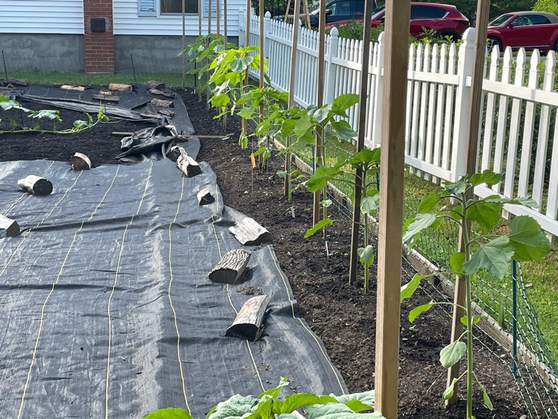 Here is a row of our giant sunflowers. These are all between 2-3 feet tall tonight.