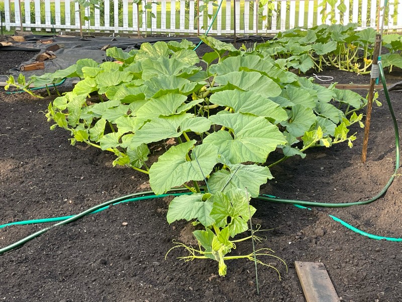 The 1455 Young is our second best plant in length but has the best secondaries. She is just shy of 14 feet long today but has no females showing as of yet. The male blossoms have pollen, so I don�t believe it is a sterile plant. The 1080 Young which is the momma was slow last year with females as well.