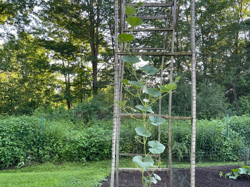 Here is the other 146 LeBlanc long gourd. Starting to grow well and is at 11 feet long tonight.