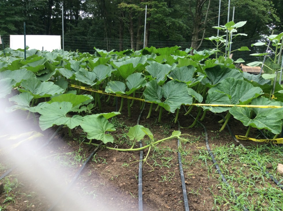 Leaves on the 2200 Geddes plant, nearing 4 foot tall. Last year tall, big leaves hurt my season, so I decided to cut way back on my nitrogen that i put down in the spring. I cut back by about 40% from my soil test recommendation. The only thing i can figure is that in July when it really warms up, my manure that i put down must really start to release the N. I have the caution tape out, and it really helps keep the leaves from falling over.