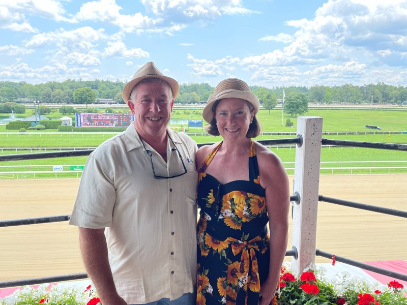 We decided to take a couple of the track tours and here we are just below where the announcer sits. Saratoga race course has been around since 1864 and is full of racing history. Kerry was fortunate enough to get a shoe from the black smith on our back lot tour.