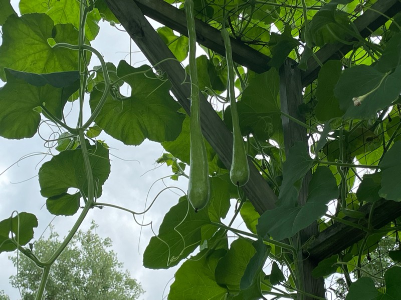 Ummmm. Perhaps Barry had a pesky moth that pollinated a caveman club before it came to the 146 long gourd. LOL The fat bottom might add weight that will stretch the long gourd even longer. Stay tuned!