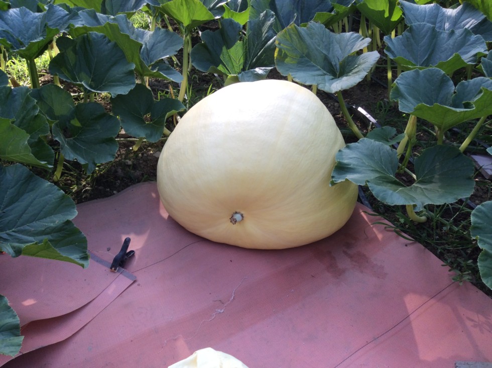 This is my 2268 LeBlanc fruit. Not doing so great. Day 24 today. I will measure on day 30, but i dont expect much. This pumpkin is way out on main vine, around 22 foot. Not ideal. I have a huge plant behond it, but barely any past the fruit because its at the end of the patch. Im trying to swoop some vines back to gain some more plant.