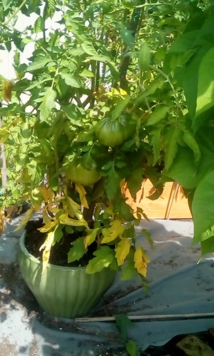 One of two 4 gallon pails my friend Cheryl is growing the 8.1 McDonald in. Couple nice single bottom dwellers on this one. The other one is the one that has the nice megabloom. I will officially withdraw myself from the 5 gal bucket challenge as I do not have a viable plant going. Looking forward to seeing what Cheryl can do!!