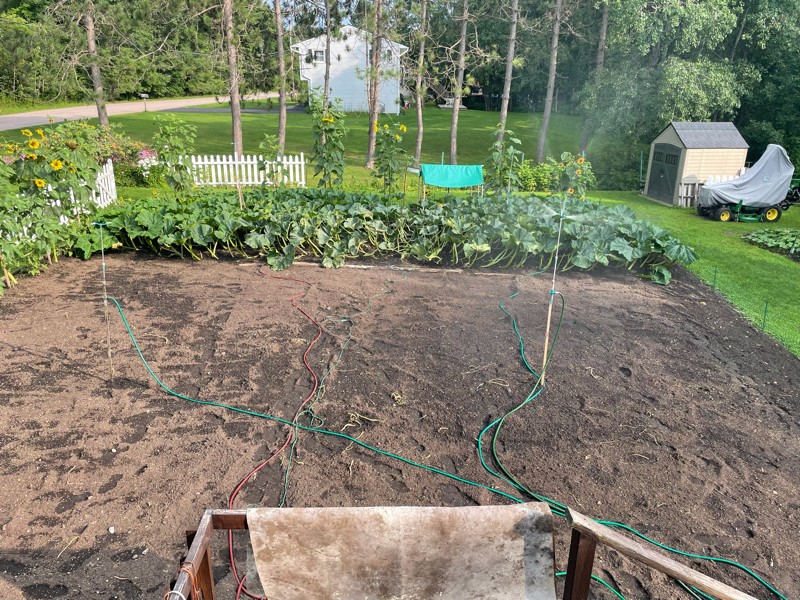 We got the plant and the pumpkin to the compost pile and soil samples taken and winter rye spread. We will keep the sprinklers out until the seeds sprout.