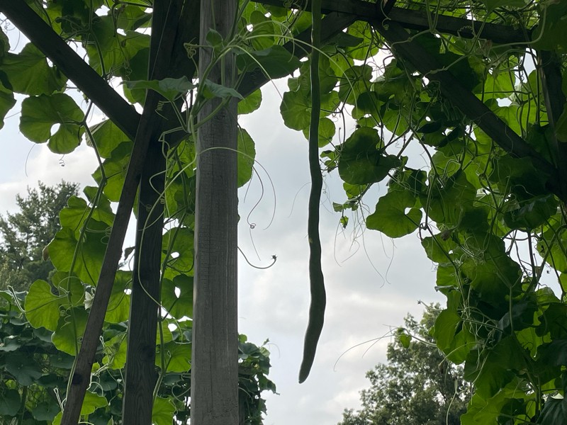 Here is the longest long gourd from the 146 LeBlanc b plant. Clipping along well at 67 inches long. We have kept 2 others on this plant.