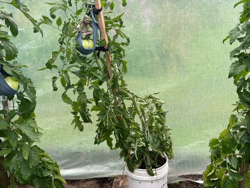 Our 5 gallon bucket challenge is still alive but growing very slowly. It has a cc of 15 inches tonight.