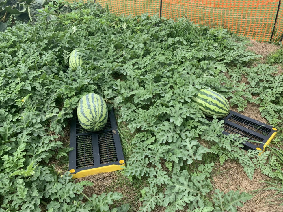 4 watermelons between 40-50lbs. 4th can�t be seen it�s inside 2558 Geddes plant. This is a first for me I learned a lot from my mistakes, definitely need more room to grow these.