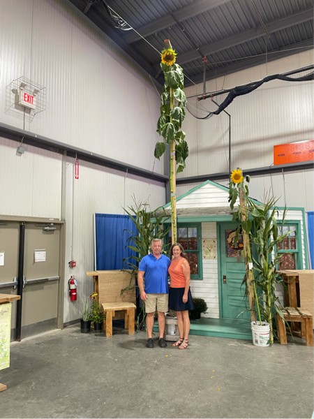 Here we are with our tall sunflower at the fair. A new pb for us and fair record at 17 feet 10 inches. Was an adventure driving this to the fair!