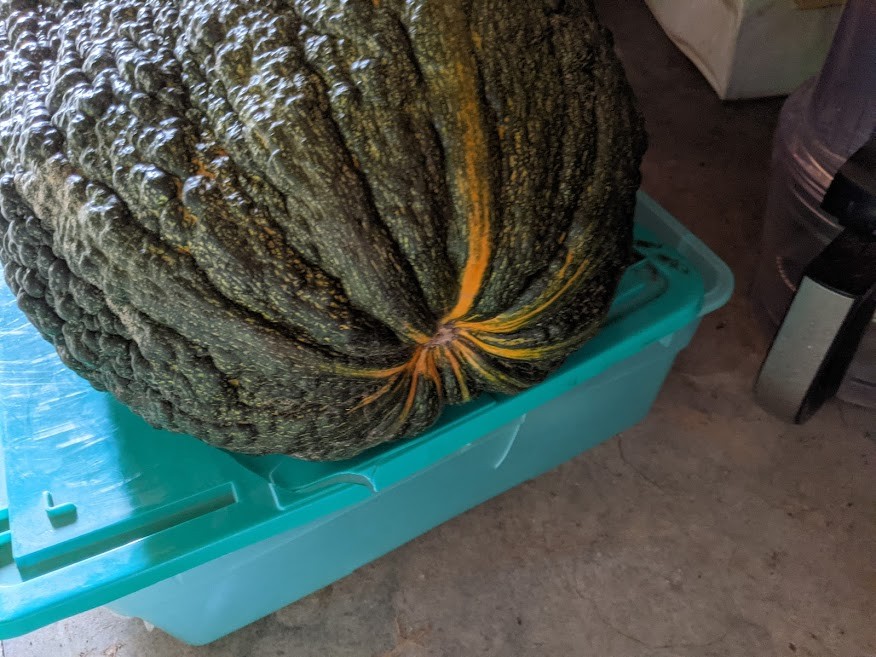 A couple weeks ago it looked like I would have some personal bests this year but things are starting to turn South. This is a state record sized marrow from the 203.93 Fortey that I had stashed in the basement since early August due to it ripening early. Pretty sure it's pure marrow genetics but starting to show some orange as it ages. Know pure zucs will orange up also if they're ripe enough but due to the current rules this one most likely heading for a DQ.