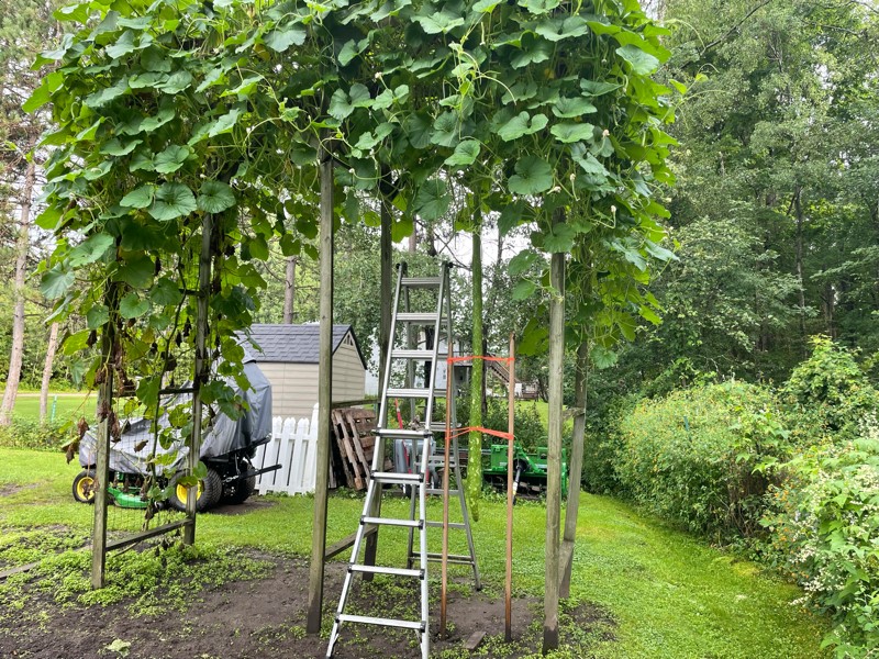 Hard to believe the 2021 season is coming to a close. Here is our best long gourd on the second 146 LeBlanc plant and we are very happy that this long gourd is now 1xx inches long. Ha! Need to keep people guessing a bit.