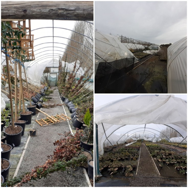 Eight tunnels lost their polythene and plants strewn everywhere. Wind speed below 7mph needed for re-cladding, which is sadly not forecast for the next two weeks.
