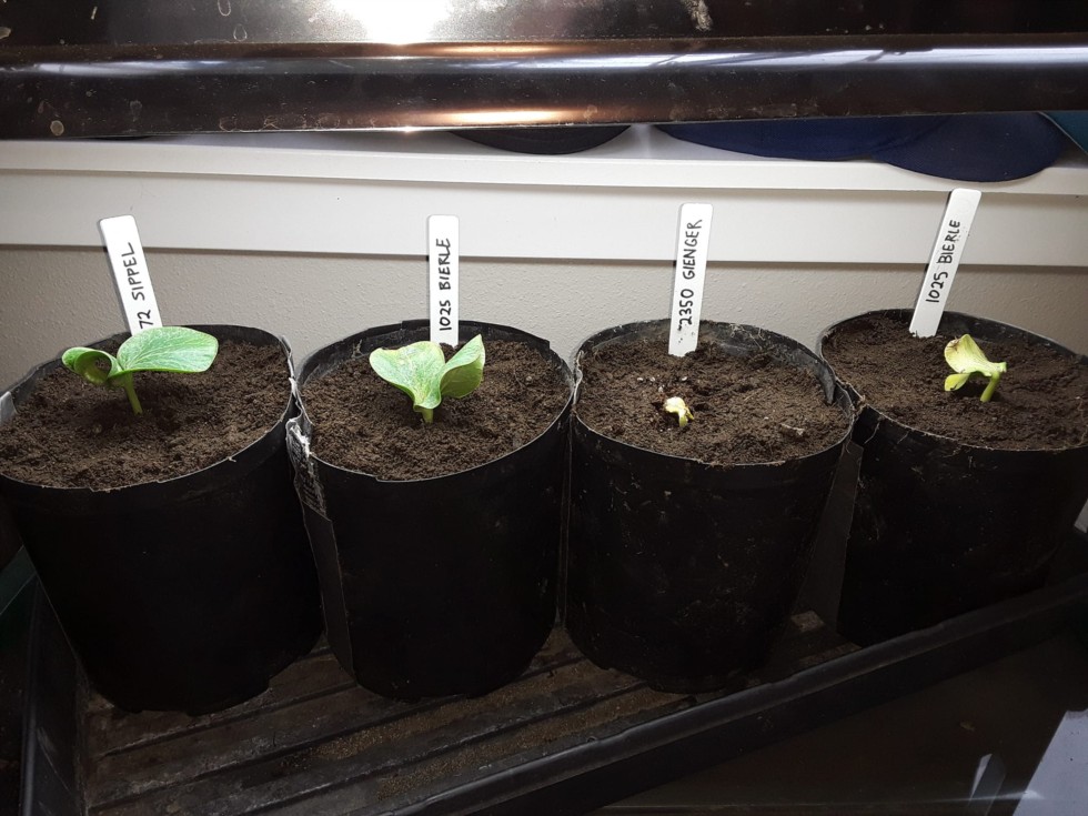 All of the seeds sprouted (sort of) and are transplanted into larger pots.