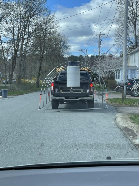 Well that�s one way to transport a greenhouse over to my patch! Thanks Woody! Can�t believe we did it