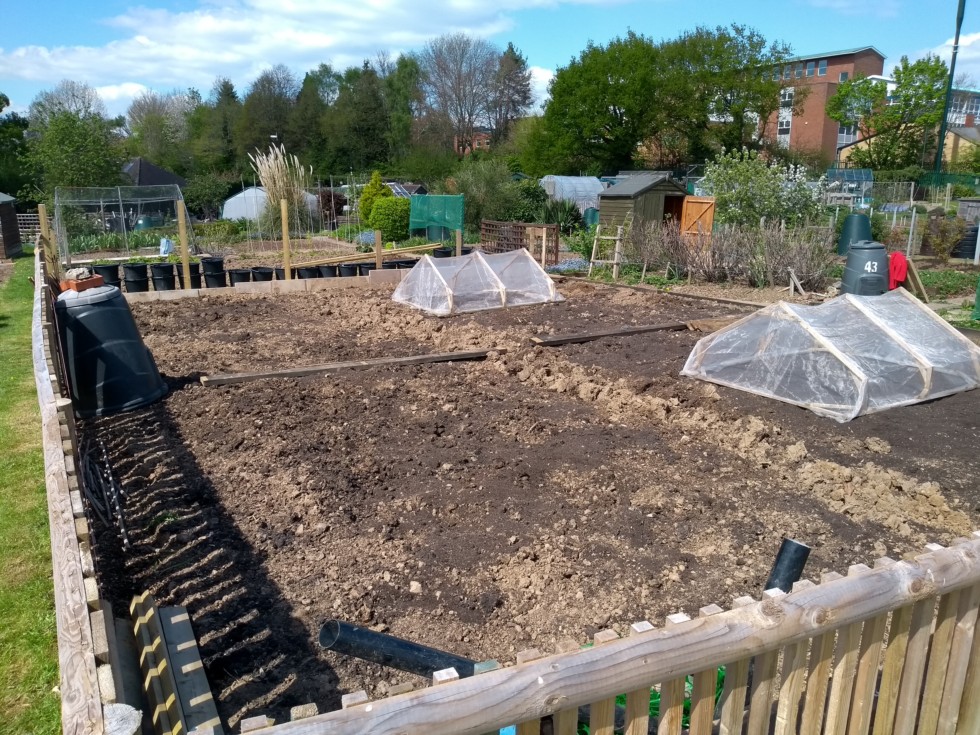 I have 3 patches here in the UK, each 6 x 8m (500 sq ft) in size. In terms of planting, I'm behind where I wanted to be, therefore, and based on a potential frost next week I'm set for May 1st. Not ideal, however, and since I don't have power I'm taking a careful approach.