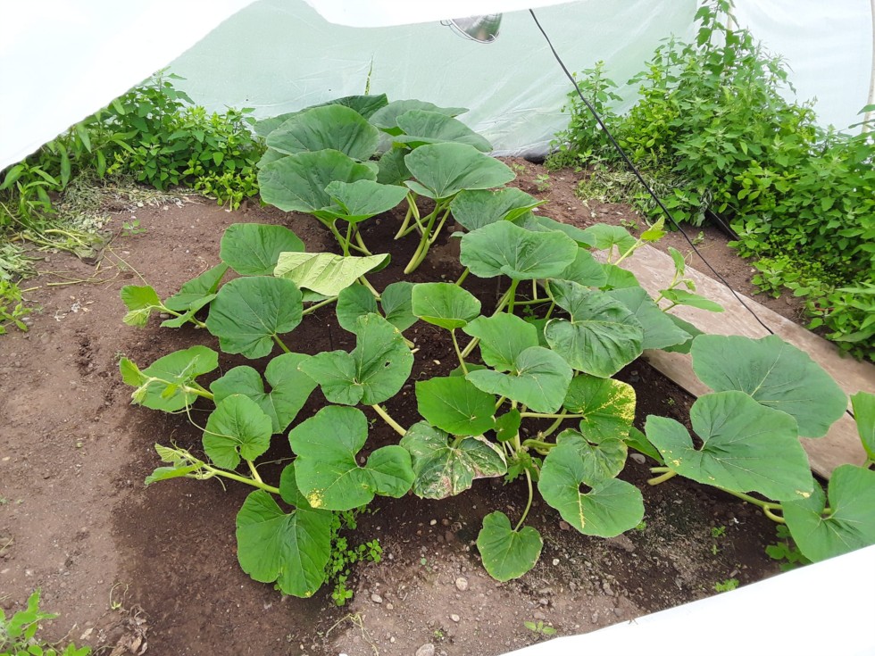 Here is the 1263.5 Montsma. I was hoping to be polinating this one about now for the Puyallup Fair. Obviously that's not going to happen due to the setbacks earlier in the year. The newer growth at the top of the picture is looking a little more healthy so I am just going to keep growing it and see what I can get. The vine is a couple feet out the end of the hoop house.