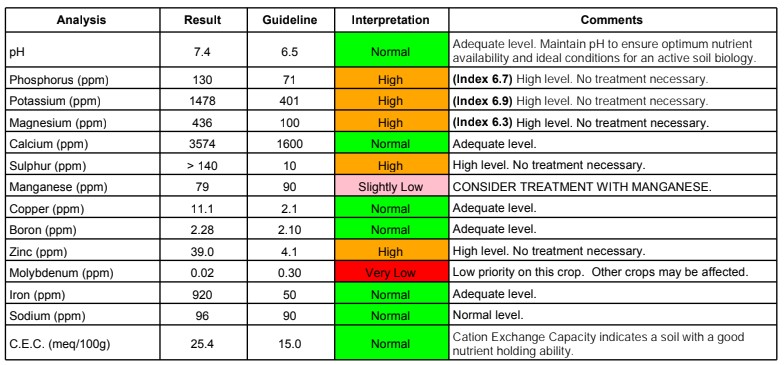 Quite surprised by the First Soil Analysis of the pumpkin patch... Although my retired agronomist father pointed me to the mulder's chart to elucidate my next steps (next entry)...