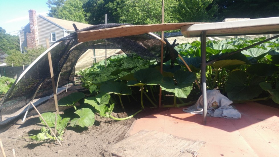 THE HEAT IS ON! I got lots of the young leaves on the 2702 x 2356 cross covered with shade cloths today, so they wont wilt... The plants are trying to keep up with the demands of the new growth on every side vine and the main.