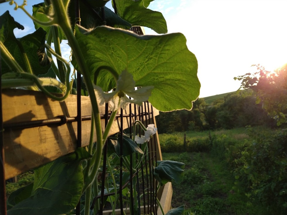Pollinating a couple early long gourds for the state fair. These are on the 128 Michael pollinated with the 131 Tobeck.