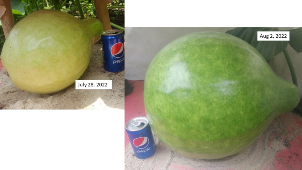 Our mighty little (286 Connolly) Bushel Gourd is on the march. It has tripled in size in the last 5 days