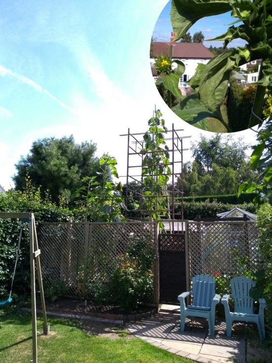 The Sunflower patch at 103 days after germination The hot weather is returning, although it's a little late for all but the backup plants. Brown A & B are nearing the end of their journey after both achieved head lock precisely 100 days of germination.