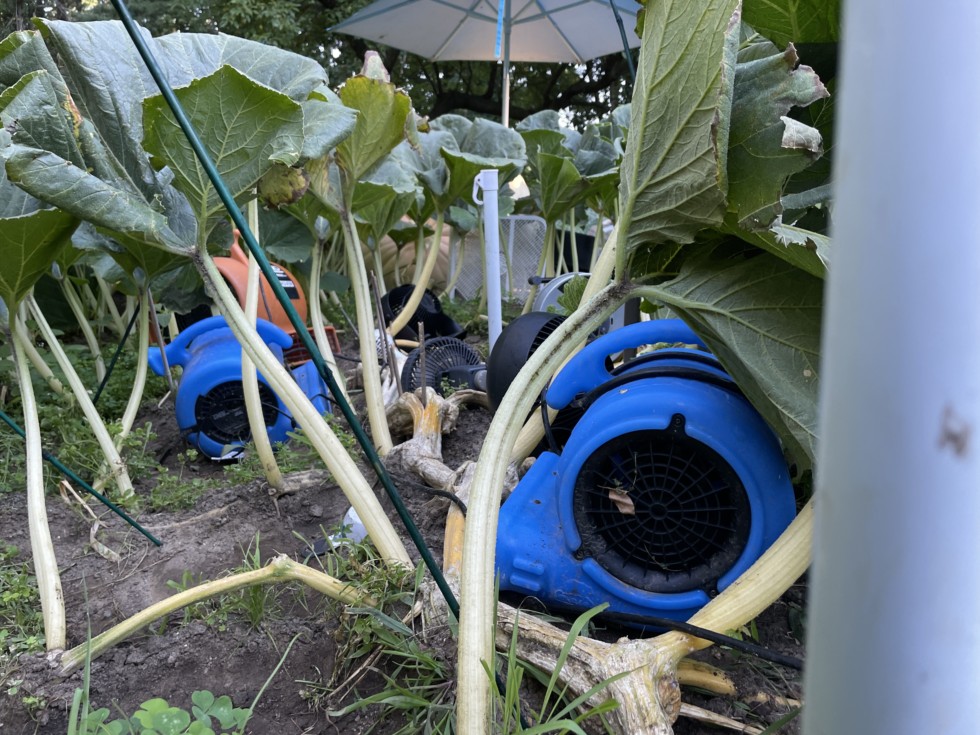 The plants are now just feeling the affects of the 100 degree weather we had for 2 weeks. I�ve had to do several surgeries since Monday on the main vine. Several fans to dry the main vine out but whenever they look dry then just ooz again the next morning.
