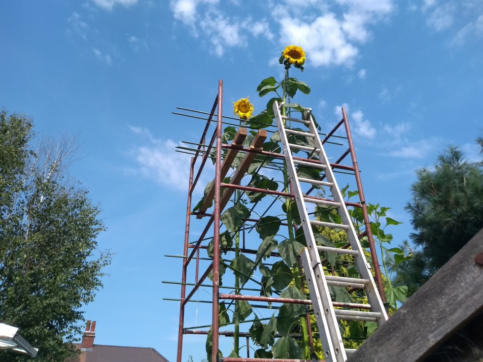 The Sunflower patch at 110 days after emergence With hot daytime weather and warm nighttime temps all last week, and seed 'C' growing 77cm in 7 days, one thing is clear, plenty of heat and sunlight = growth. Perhaps I need to relocate back to Australia.