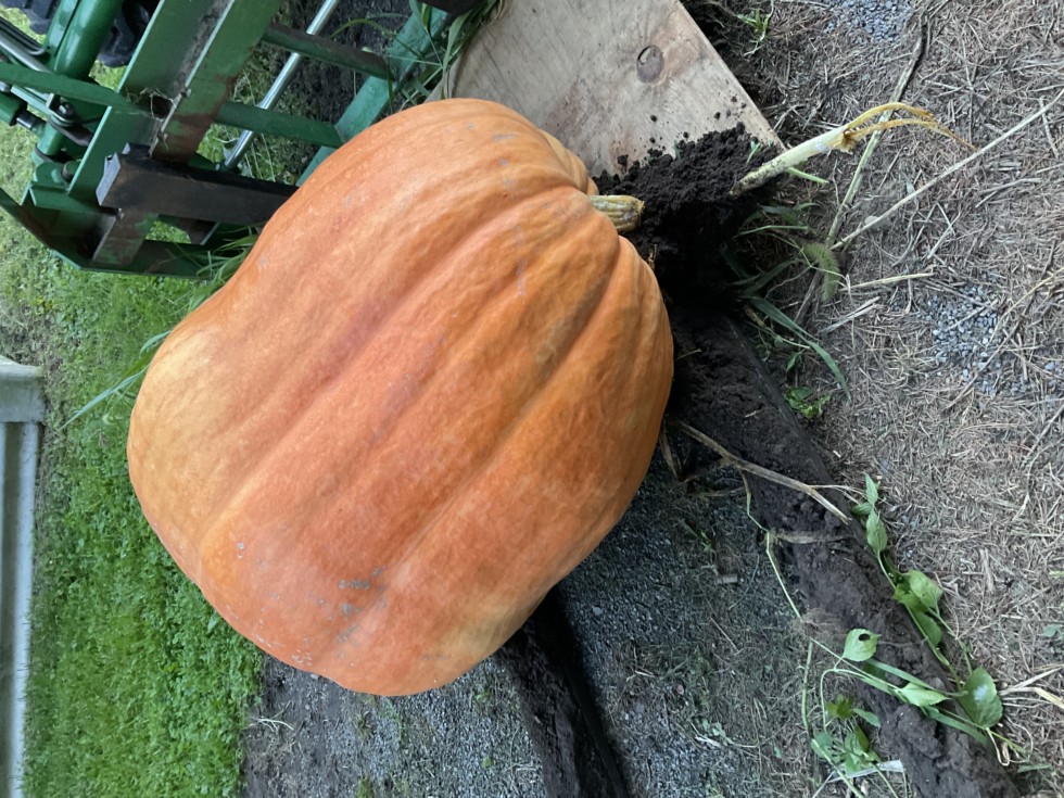This is off the 1469 Young. I pollinated 91 giants this year but with excessive temperatures and no measureable rain for 6 weeks in June and July most did not make it. This one has a soft spot on the back side but I will save the seeds since it was crossed with my 991 which had great color. Next year I will plant fewer giants