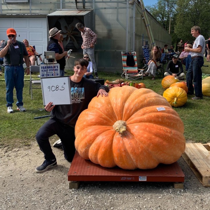 Let�s go! My pumpkin came in at a whopping 908.5 pounds at the Sam Mazzas Farm Weigh off in Colchester Vermont to make the HUGE comeback from last year and took 11th place out of 22 pumpkins. Grown off the 1223.5 Gansert. Bigger than what I estimated it at. One of the biggest pumpkins I�ve grown yet and we�re not done yet!