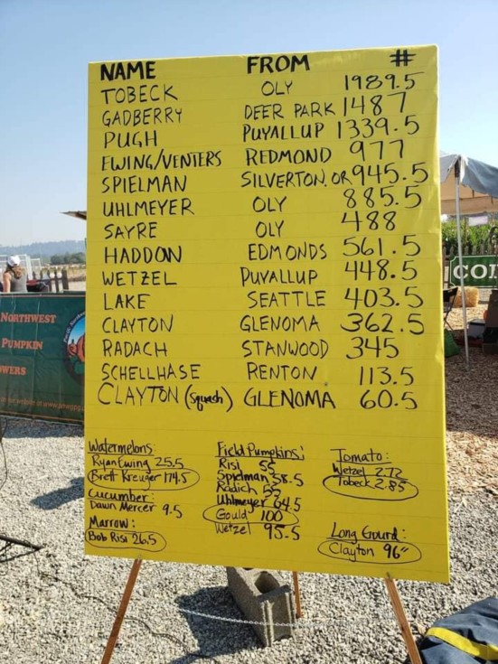 I finished in 12th place. I had big Hope's for this plant but things just seemed to keep going wrong. I bent the main vine early on. Then I had 4 failed pollination on the main vine. I finally got one set on a side vine and then it had a blossom end split. This one was the only one left. It was a late pollination and it started showing a weird shape early on and never really took off. Ryan Ewing took the Howard Dill award with his 2350 plant. Its seems like almost every pumpkin out there off this seed was beautiful and then there is mine. Oh well.