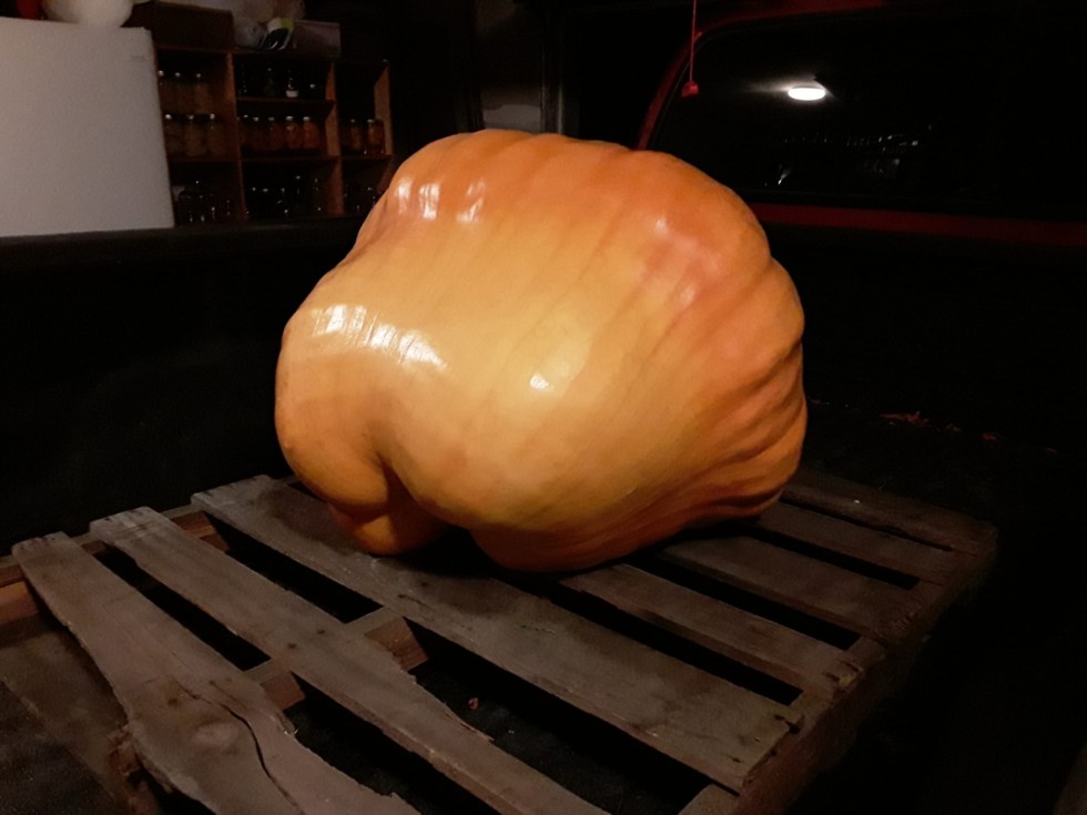 I have her measured at 93" Circumference, 219" OTT for an estimated weight of 243 pounds. All of my original goals have long been out of reach so I will settle for beating the 238# I got at the Puyallup fair.