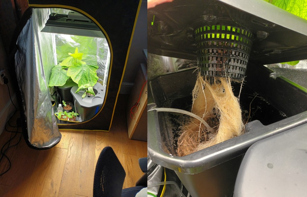 Reboot of my winter hydroponics project. Therefore out with my DIY rig and in with some 20ltr OxyPots. On the Christmas list is a PH an PPM/EC monitor as I�m flying blind in terms of dialing in the nutrient levels. Both plants are certainly not at their optimum. Interesting experience so far, but will I have a Pumpkin/Sunflower for spring 2023. LED lights are at 40% to cushion my �360 monthly Electric and Gas bill.