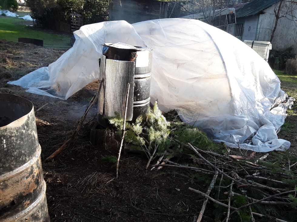 All of this has no purpose other than trying an alternative heating method (besides electricity). Granted electricity is cheap so it saved very little money maybe $5. Last year the heating effect lasted about 10 days. Temps in the 20's tonight so wondering how much this heating method can boost that. Just experimenting. It didnt consume much wood, hence the rocket stove setup has proved itself superior to a standard camp fire in that regard.